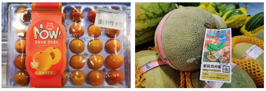 记者来到盒马长宁来福士店看到,众多新疆水果已经上架。如外皮带有“红霞”、口感细腻的库尔勒香梨;杏香满溢、果肉甜糯的新疆吊干杏;果皮薄脆、汁水充沛的喀什西梅;水分足、口感脆甜的西州蜜瓜等。