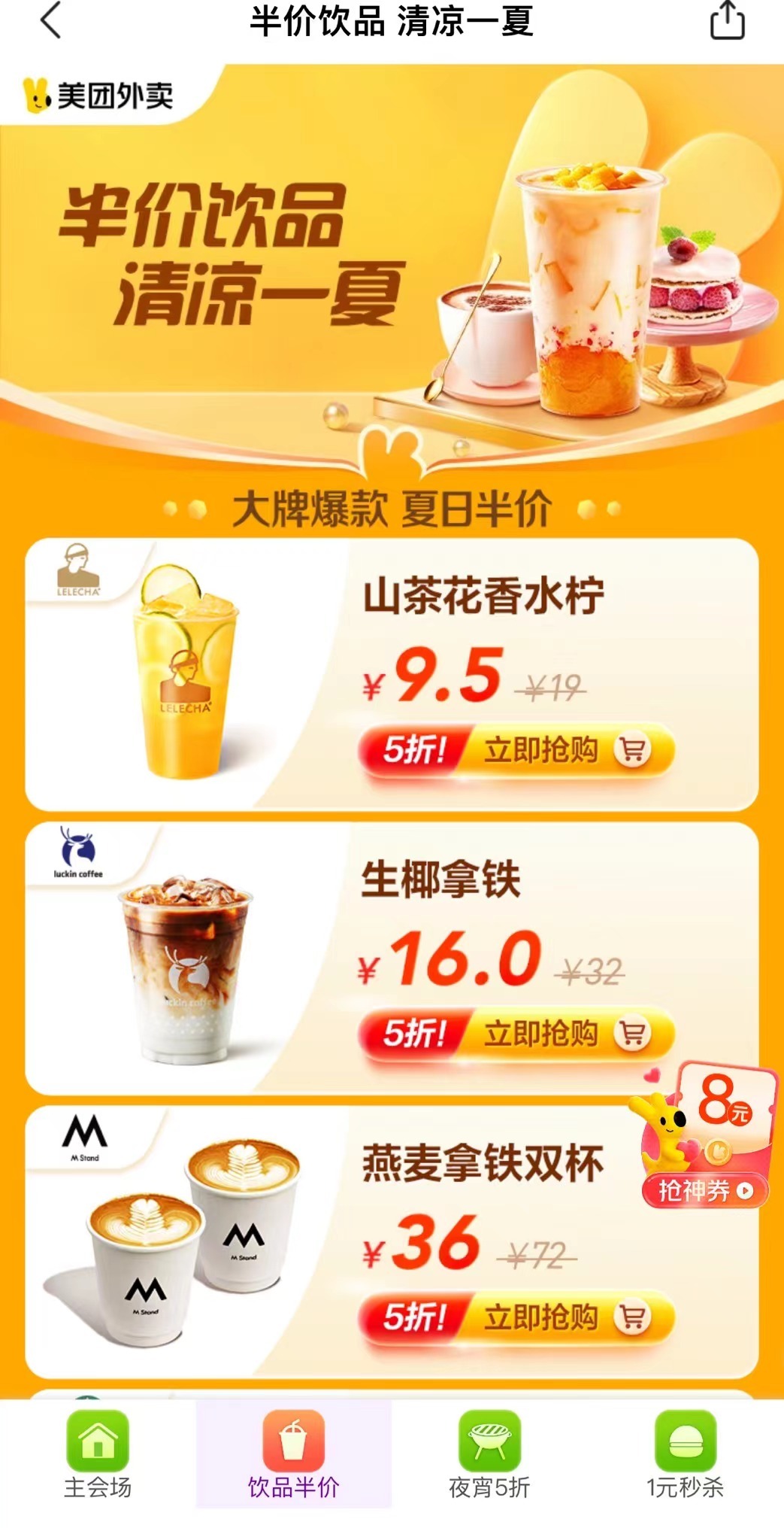 饿了么咖啡专场免单活动开启