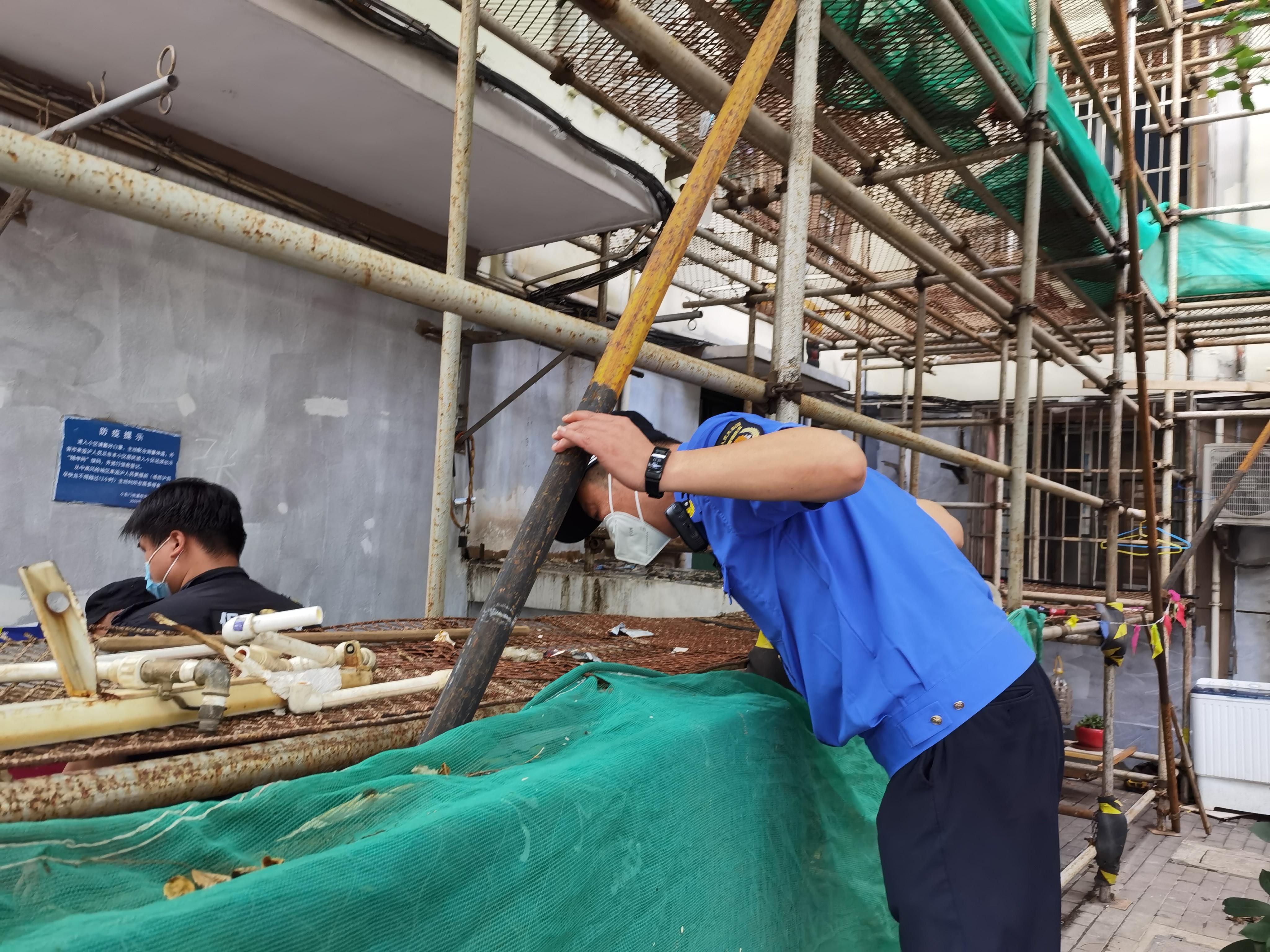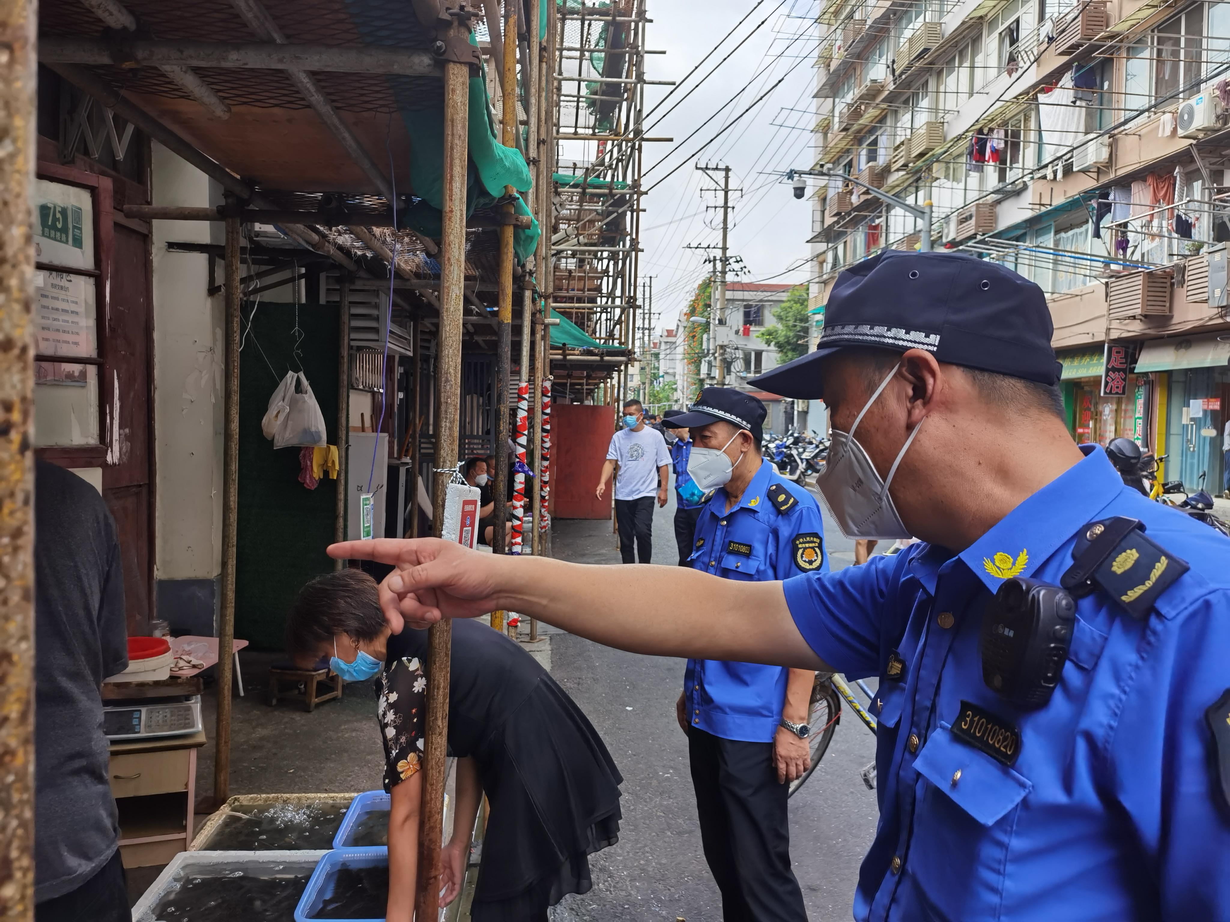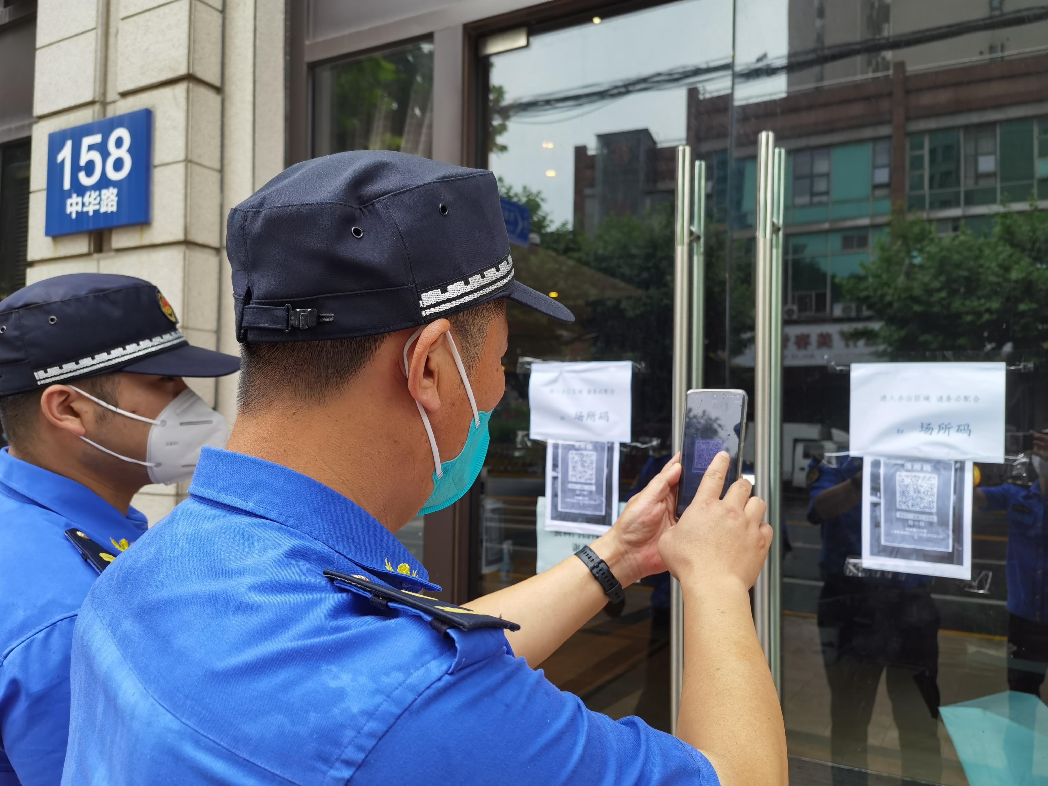 为保证复工、复产、复市有序推进,勇战高温的他,不停穿梭于街头巷尾,检查沿街商铺场所码使用及信息登记情况,督促商铺发挥场所码、数字哨兵防疫关卡作用,对扫码人数显著偏少、信息登记缺失的商铺,严肃宣传教育、要求立即改正,从源头上把好“入门关”。一天下来,两万多步数已成家常便饭,制服湿了一身又一身、后背上印出的汗渍仿佛描绘成一朵盐花——似乎在为城管人的辛勤劳动而赞美。