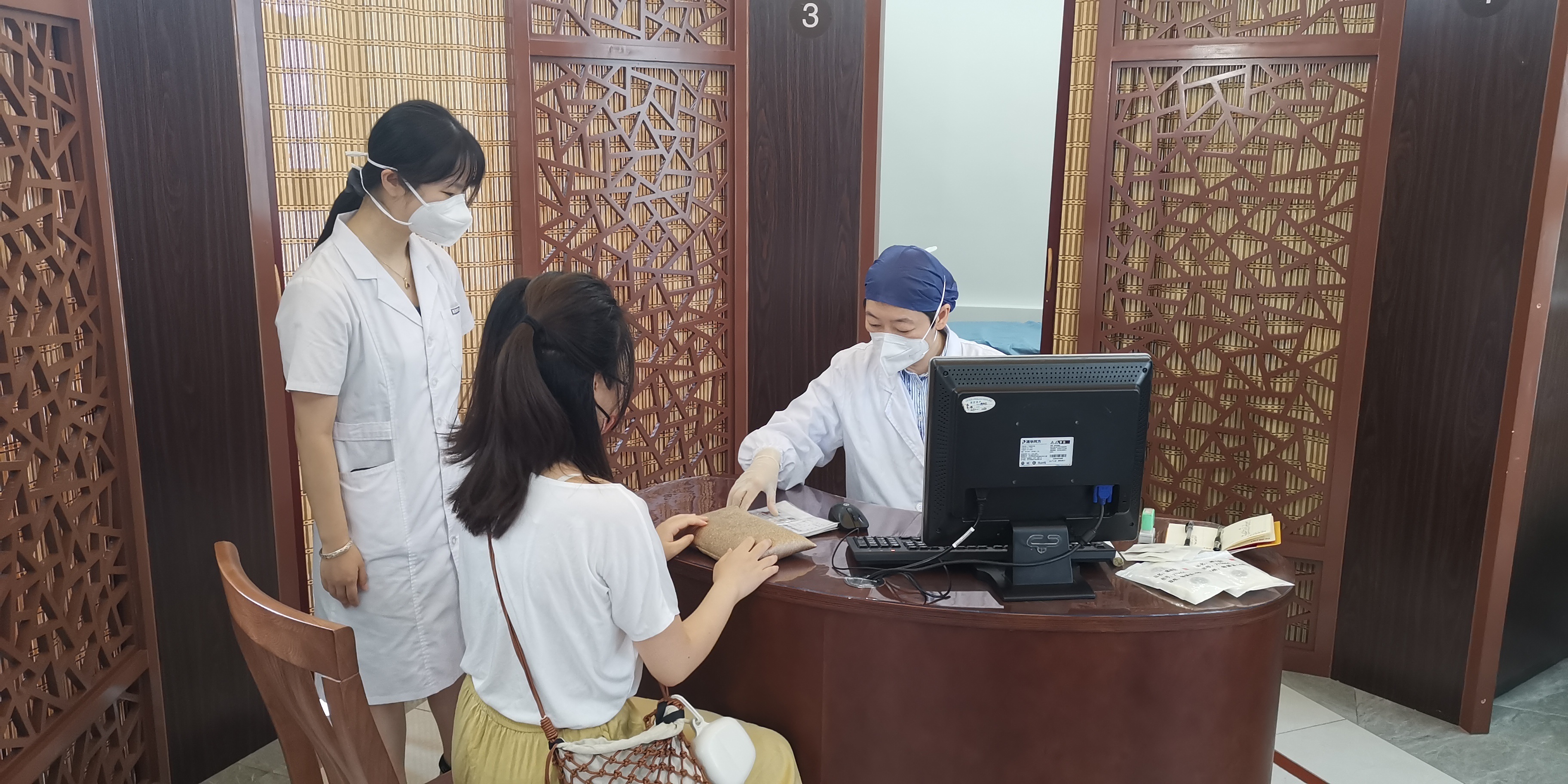 三伏天,冬病夏治正当时,位于静安区青海路44号的上海岳阳医院青海路名医特诊部,前来就诊的患者以青年白领为主。