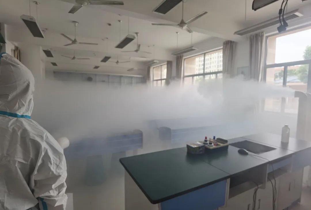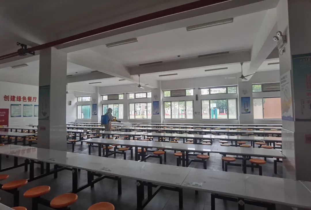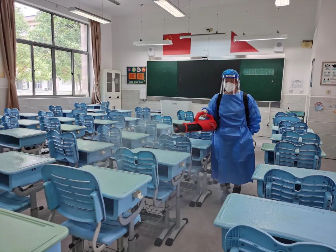 校方介绍,学生返校之前,学校委托专业消杀机构对整个校园进行全面消毒。开学后,由本校的教职员工根据上级部门要求开展学校日常的常规消杀。每人有专门负责的区域,每天师生离校后还会对教室、楼道等进行消毒。