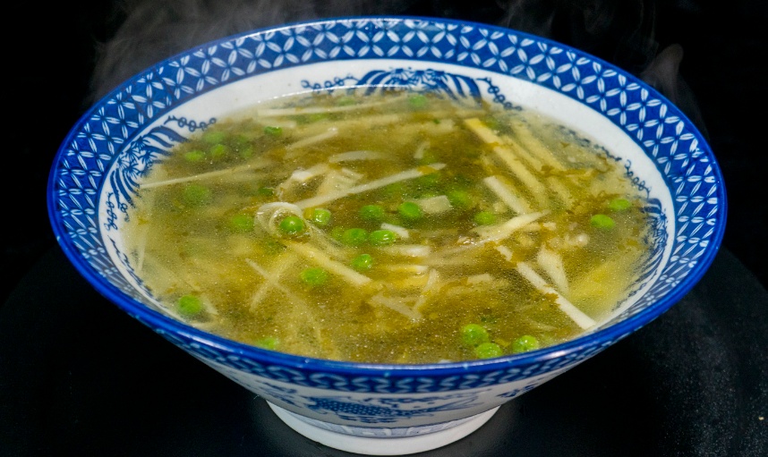 “三天不吃盐齑汤,脚骨浪里苏茫茫。”这句俗语虽然夸张,但足以看出盐齑汤在崇明人心中的地位。汤里用的盐齑多是农家人用雪里蕻腌制的一种咸菜。而小寒(崇明话,即豌豆)则是崇明人春夏饭桌上不可缺少的鲜蔬,两者结合,加上新鲜笋丝一起烹饪,往往还未上桌,便可闻到浓郁的“小寒”清香,混杂着被盐齑、笋丝调出的醇厚的鲜香咸味,让人食指大动。