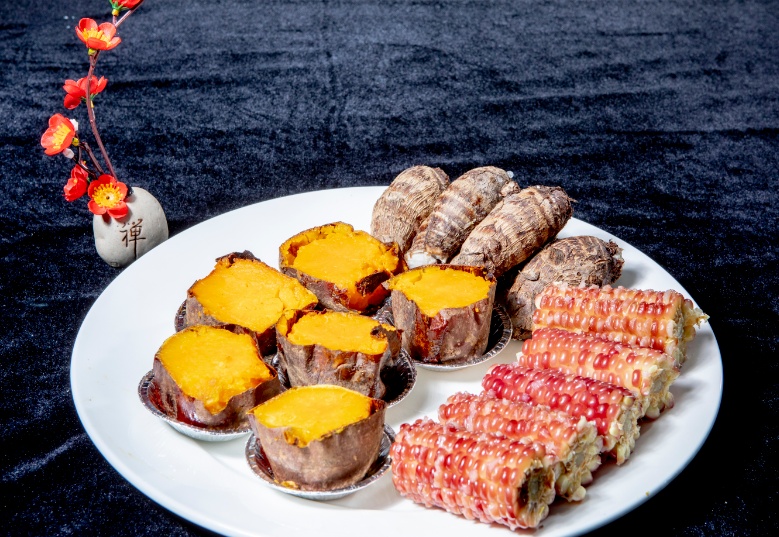农家三宝,是崇明人用蒸熟的香酥芋、洋蕃芋、紫糯玉米拼盘而成的一道粗粮主食,而且这几个都是秋季里时令的本地食材,用崇明的土灶来蒸,土灶后是柴火架起的红红火火,土灶上是几味食材被蒸出的缕缕清香,是崇明人的独特记忆。