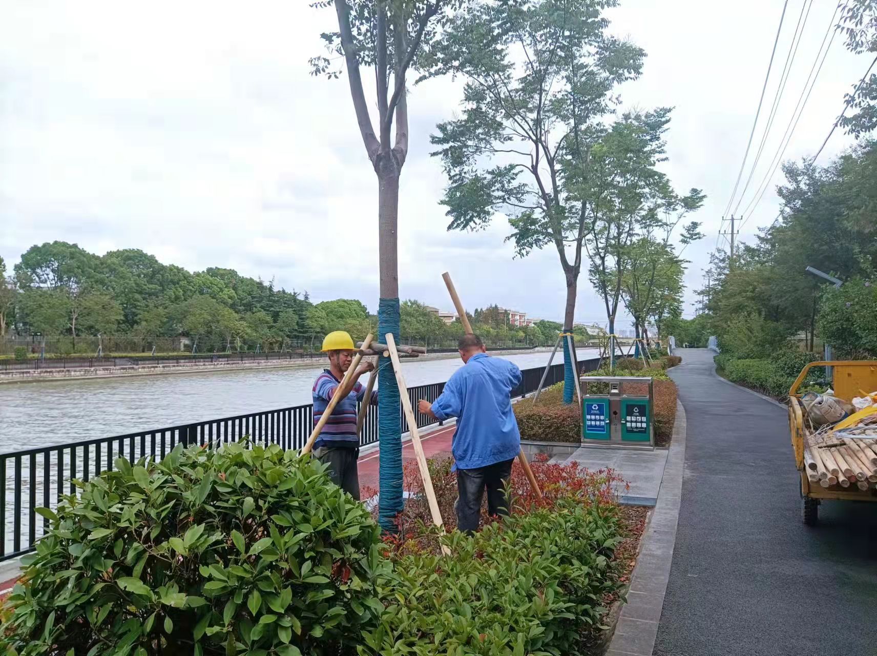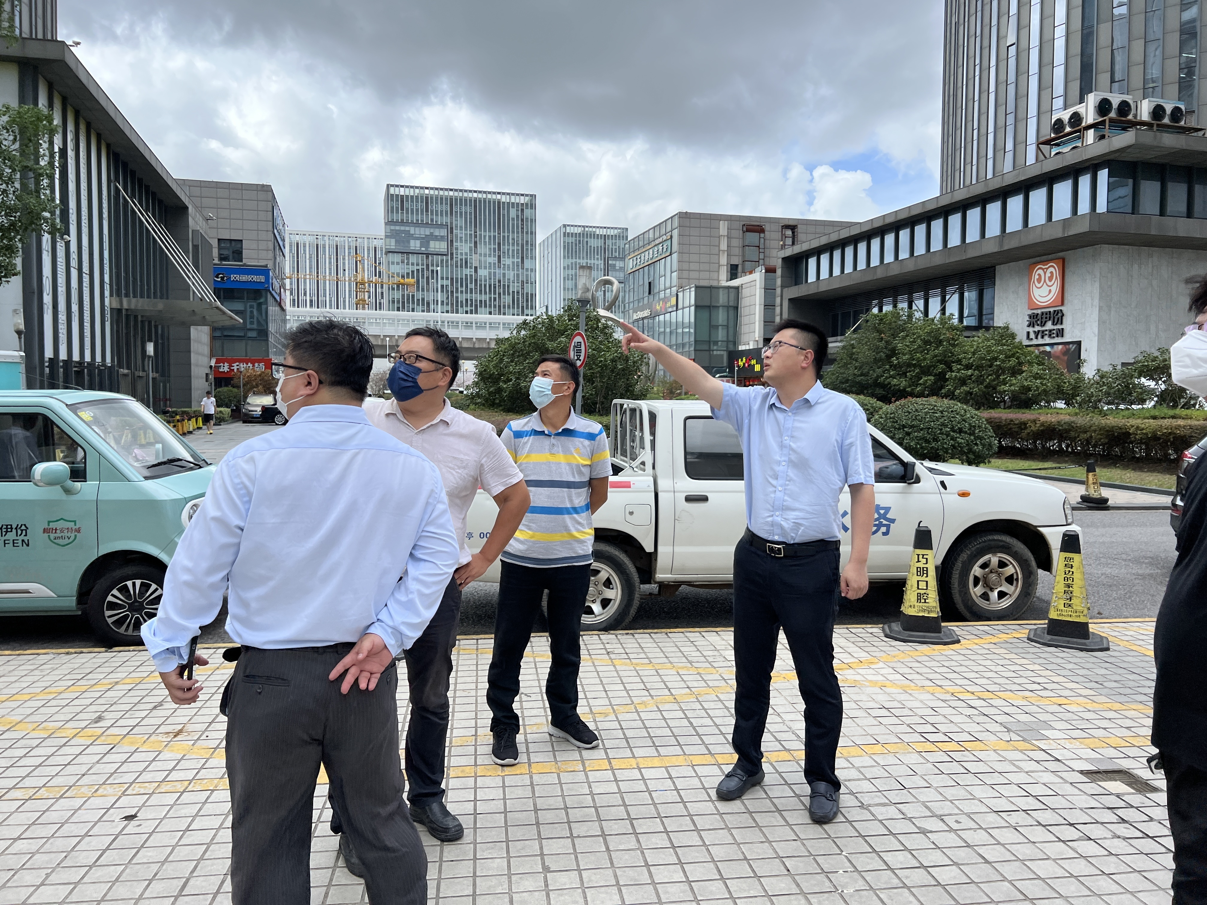 自9月1日以来,九亭镇重点检查了设置在城市道路上的核酸检测亭,对56个核酸检测亭采取了加固措施。工地是台风期间的高风险区域,考虑到近期在建项目较多,镇防汛指挥部安排专人开展工地设施、设备安全隐患排查,督促工地加固大型塔吊、脚手架,并在人员进出口设立警戒线,告知附近市民台风期间切勿靠近。