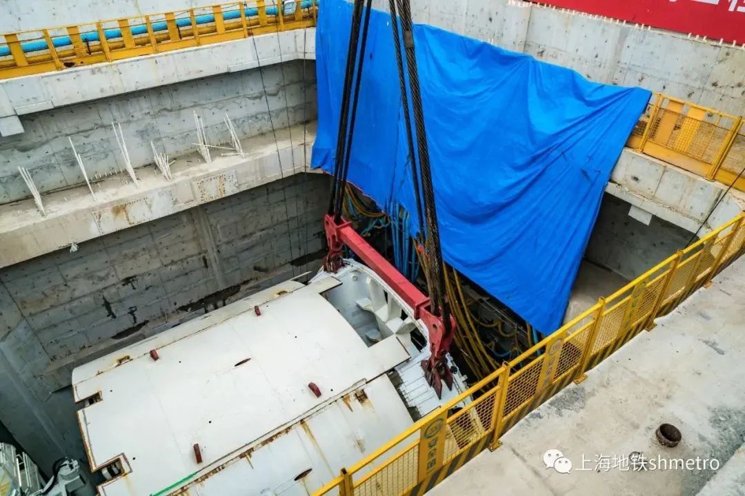 起吊、翻身、下井,在历时3小时后,“申通号”刀盘顺利完成下井任务。未来,“申通号”盾构机将完成崇明线南港越江段区间的掘进施工,全长7.74千米的南港区间隧道贯通后将成为“上海轨道穿越长江第一隧”。