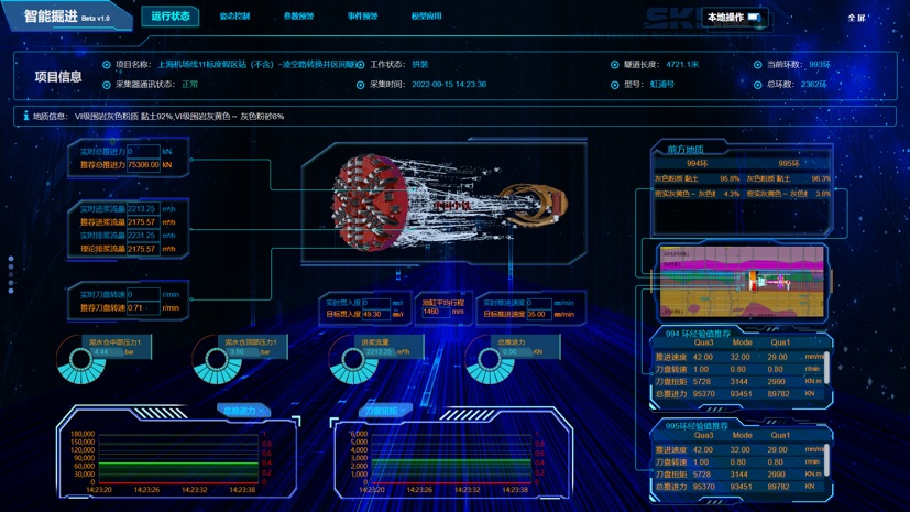 盾构机智能掘进运行界面↑