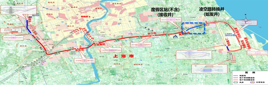 上海机场联络线工程线路平面图(蓝框内为11标段)↑