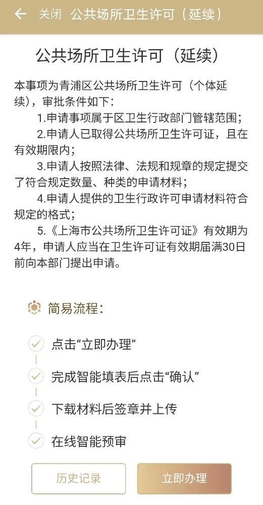 《公共场所卫生许可证》快要到期了怎么办?延续有什么步骤?需要准备哪些材料?线下该去什么地方办?“好办”“快办”服务——“公共场所卫生许可个体延续”为您解决上面所有问题,按照步骤提示线上提交材料,即可实现足不出户“零跑腿”“指尖办”。