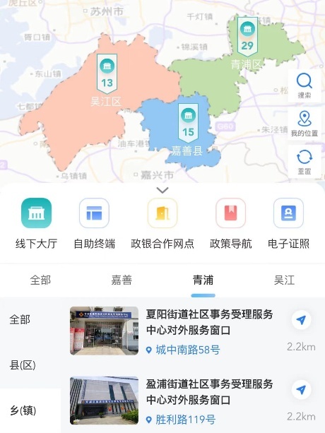 坚持以用户为中心,打通区域阻隔和数据堵点,提升“青浦好办”广度和跨度,实现青浦、吴江、嘉善三地政务服务“一网通办”。从用户视角和需求出发,合理设置栏目内容及功能,通过直观、可视、清晰的地图形式展示三地线下政务服务窗口、自助终端等详细信息,实现快捷查询、线上导办、线下导航,提供“同城化”的优越办事体验。