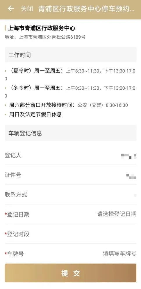 青浦区行政服务中心停车预约登记