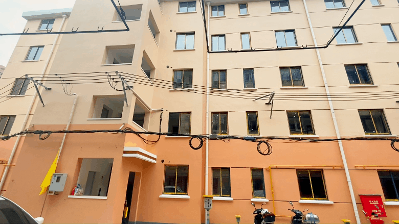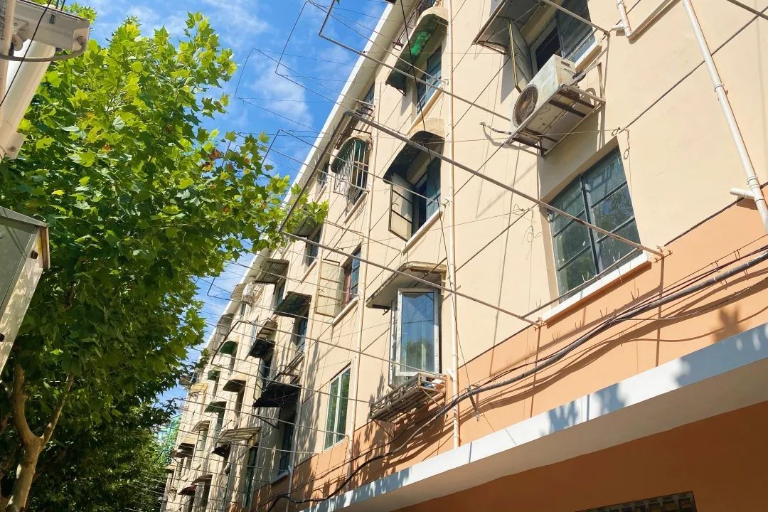 直到吹来了旧住房成套改造项目的“东风”,“老房新生”的愿景在这里落地生花。五村主要采用“贴扩建”的方式进行成套改造,即敲掉位于居民楼北面的合用厨卫,扩建出崭新独立的厨房与卫生间,以改善居民的生活环境。