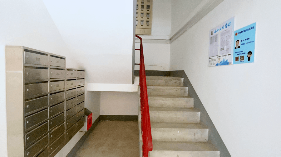 由于76-77号居民楼与位于北面的74-75号居民楼离得太近,有的楼层公用空间有限,一户一独用分配不过来,只能通过“抽户”的方式,把这层楼分不到面积的住户“抽”出来重新安置。于是,曾是国营商铺的一楼被政府回收,被改建为这些住户的新居所。