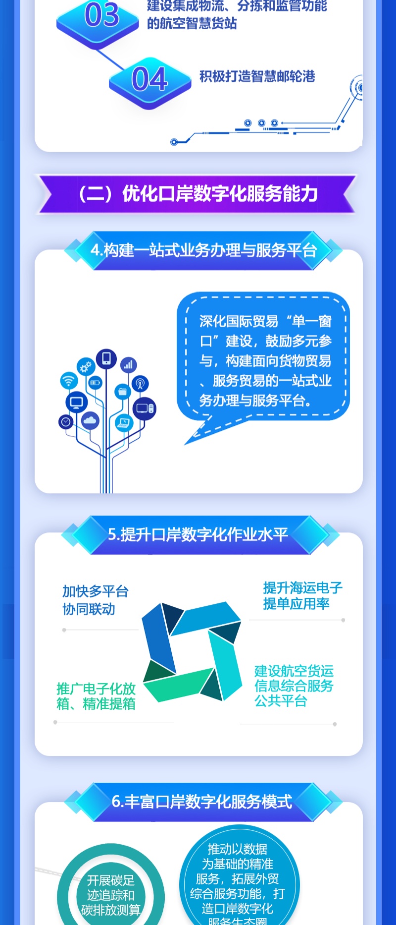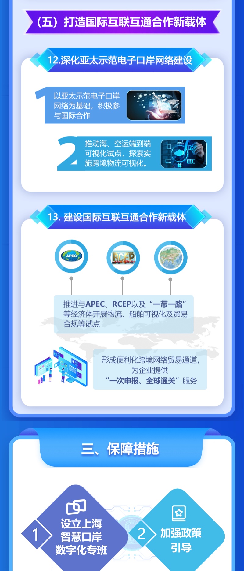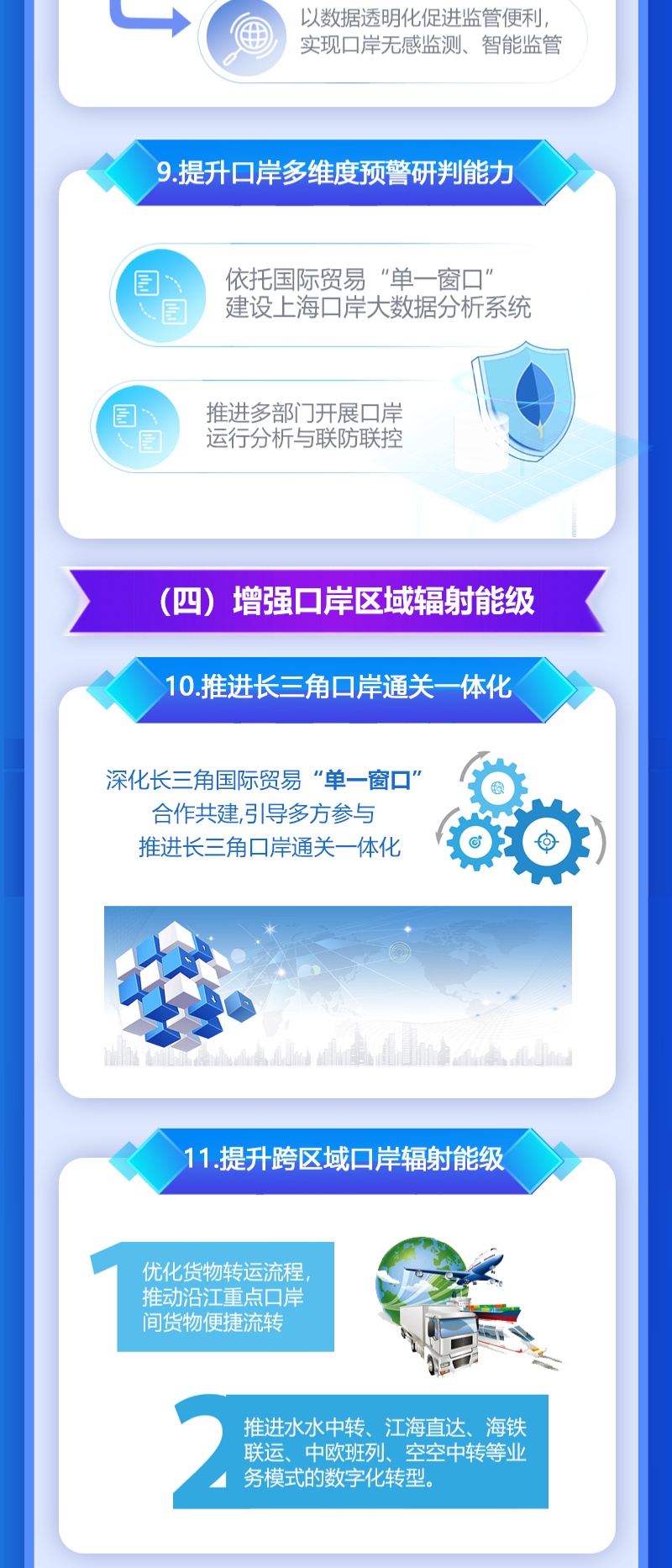 近日,为全面推进本市智慧口岸建设,根据市委、市政府《关于全面推进上海城市数字化转型的意见》、《推进上海经济数宇化转型 赋能高质量发展行动方案(2021-2023年)》和《全面推进上海数字商务高质量发展实施意见》等要求,把数字化转型作为上海口岸"十四五”发展主攻方向之一,更好助力上海加快打造成为国内大循环的中心节点和国内国际双循环的战略链接,上海市商务委员会等九部门联合印发《关于全面推进口岸数字化转型实施意见》,详见
