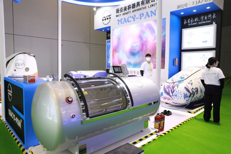在第五届中国国际进口博览会医疗器械及医药保健展区,由松江企业上海宝邦医疗器械有限公司自主研发和生产的四款高压氧舱产品亮相,其外形靓丽、造型独特,置身其中即可为人体组织进行“补氧”,吸引了不少参观者驻足体验。