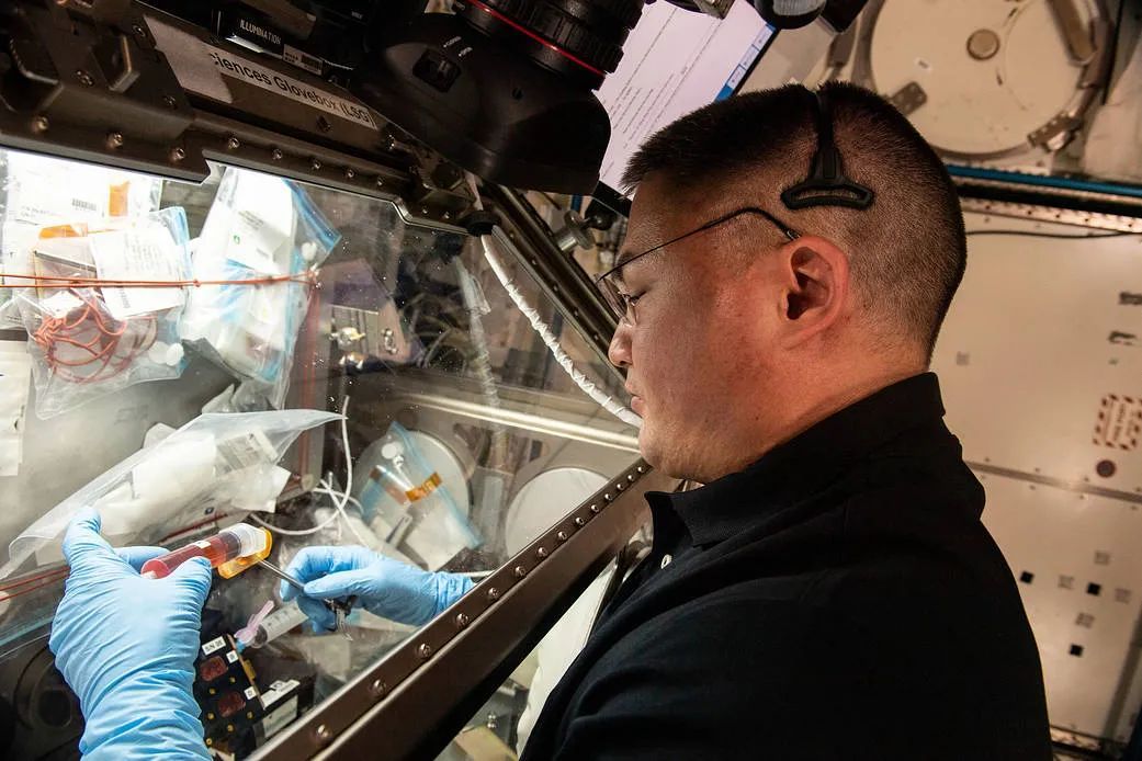 正在对生物样本进行操作的国际空间站中的宇航员 图片来源:nasa