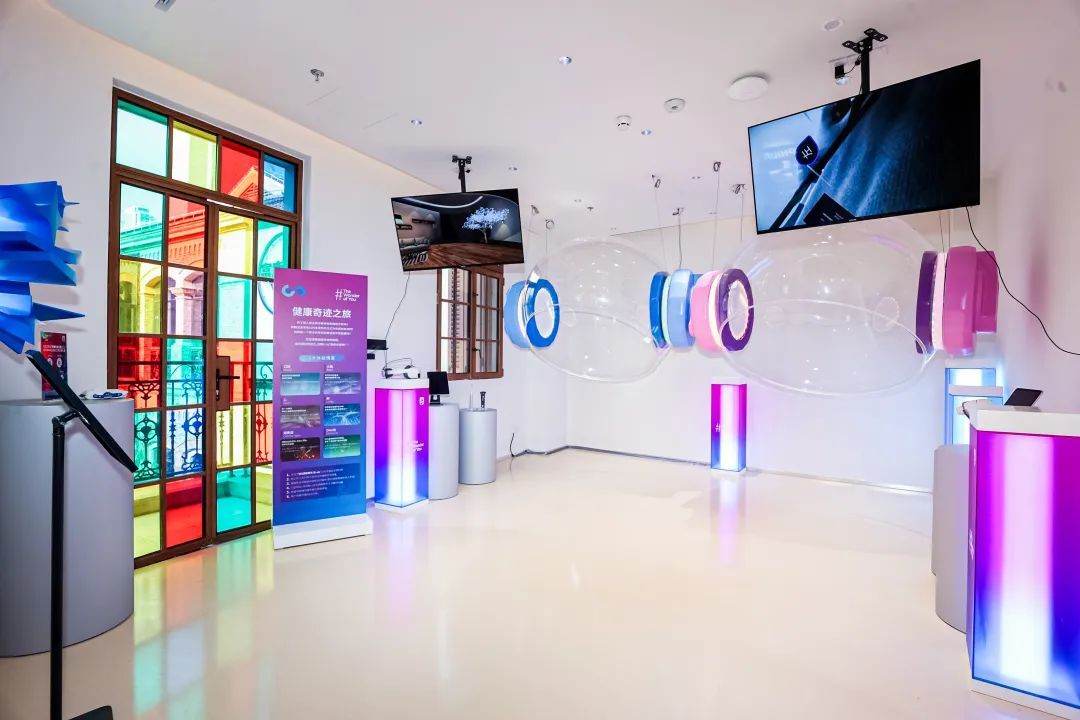 每个空间都各有特色,兼具科技酷感和艺术美感,拥有丰富的产品展示、沉浸式体验、个性化定制、跨界活动和专业服务。其中,位于二楼的“健康奇迹之旅”(the wonder of you)vr体验包括六个情景,参观者可以身临其境探索人体神奇的微观世界,了解身体更健康的奥秘。