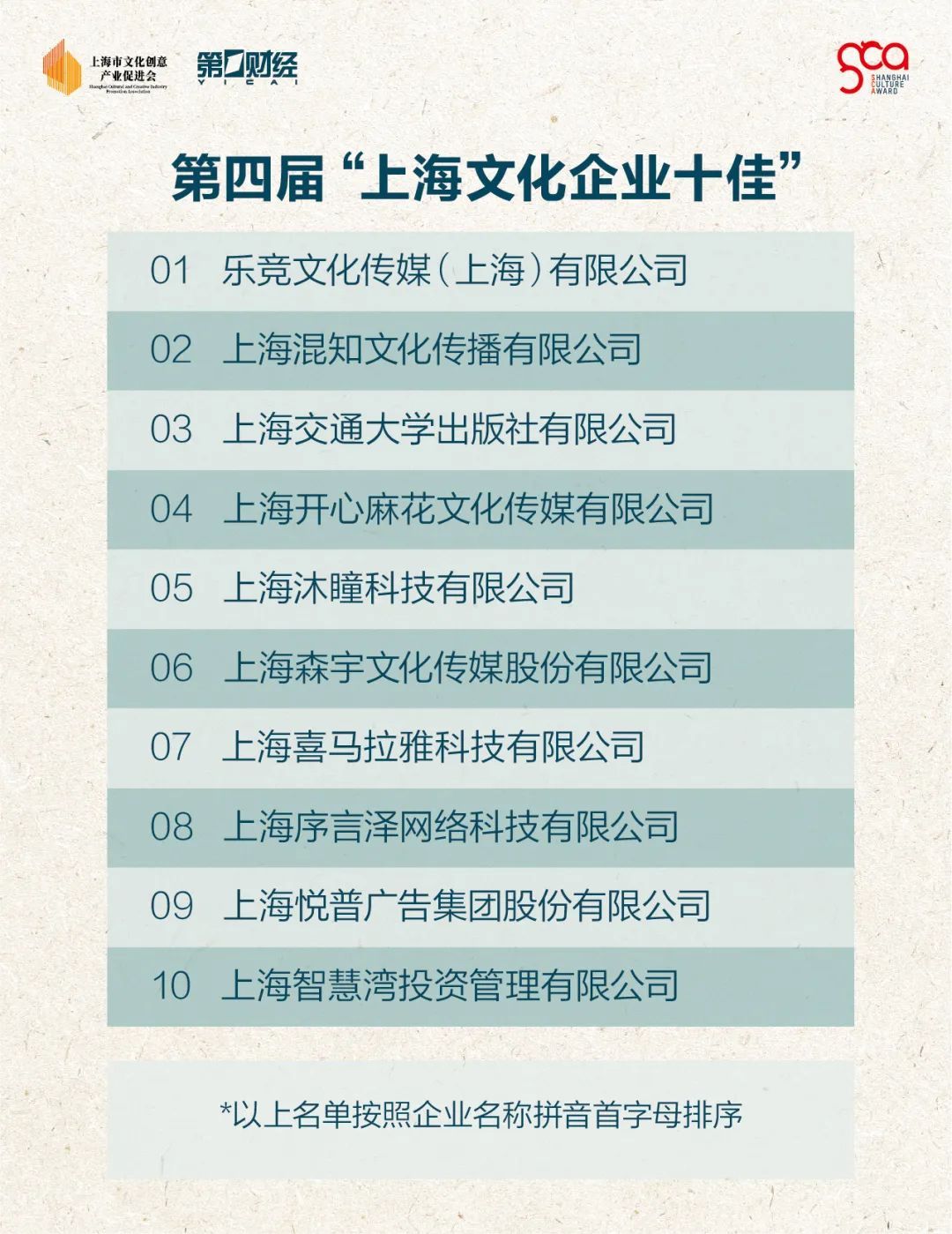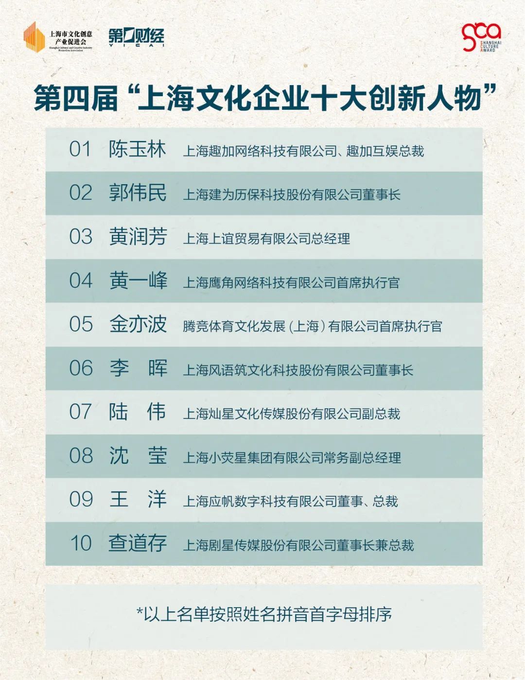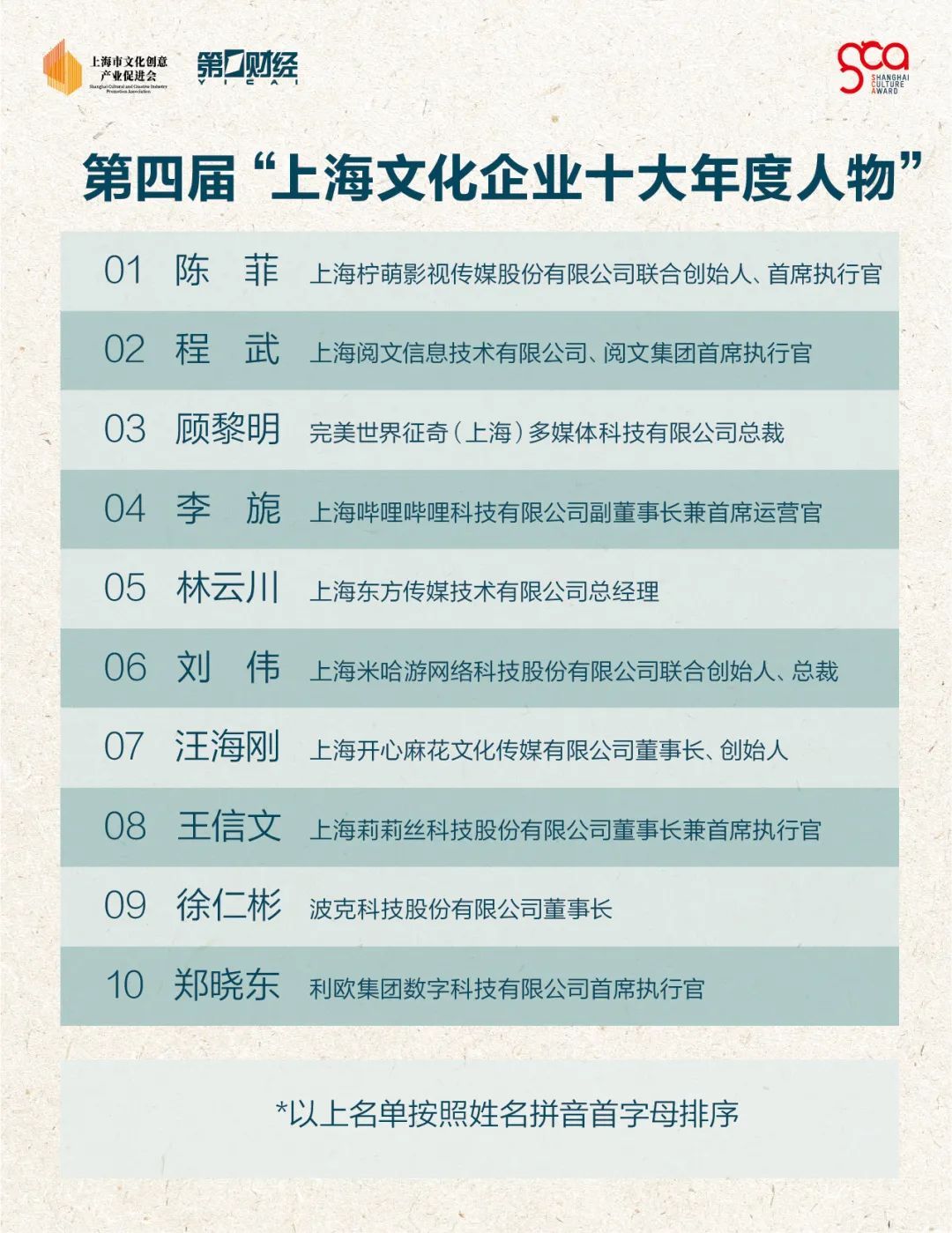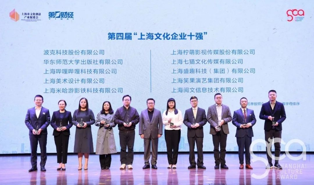 11月24日下午,第四届上海文化企业十强十佳十人十大品牌颁奖仪式在世博会博物馆举行。松江企业上海柠萌影视传媒股份有限公司、上海七猫文化传媒公司获“上海文化企业十强”称号,上海森宇文化传媒股份有限公司获“上海市文化企业十佳”称号,上海柠萌影视传媒股份有限公司联合创始人、首席执行官陈菲获“上海文化企业十大年度人物”称号。