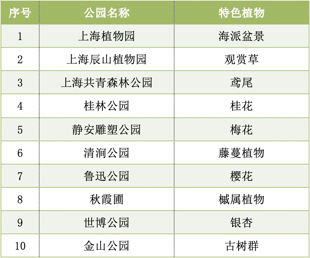 市绿化市容局表示,为推进城市公园“一园一品”建设,为市民游客提供更多优质的游园选择,2020年起,市公园管理事务中心每年对全市城市公园进行十大特色植物区评选,“上海植物园—海派盆景”“辰山植物园—观赏草”“共青森林公园—鸢尾”等入选2022年度上海市公园十大特色植物区。详见↓