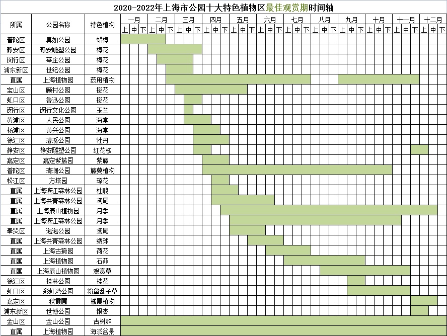 注:时间轴根据各公园个体和历史经验总结,实际或因气候变化存在一定差异。