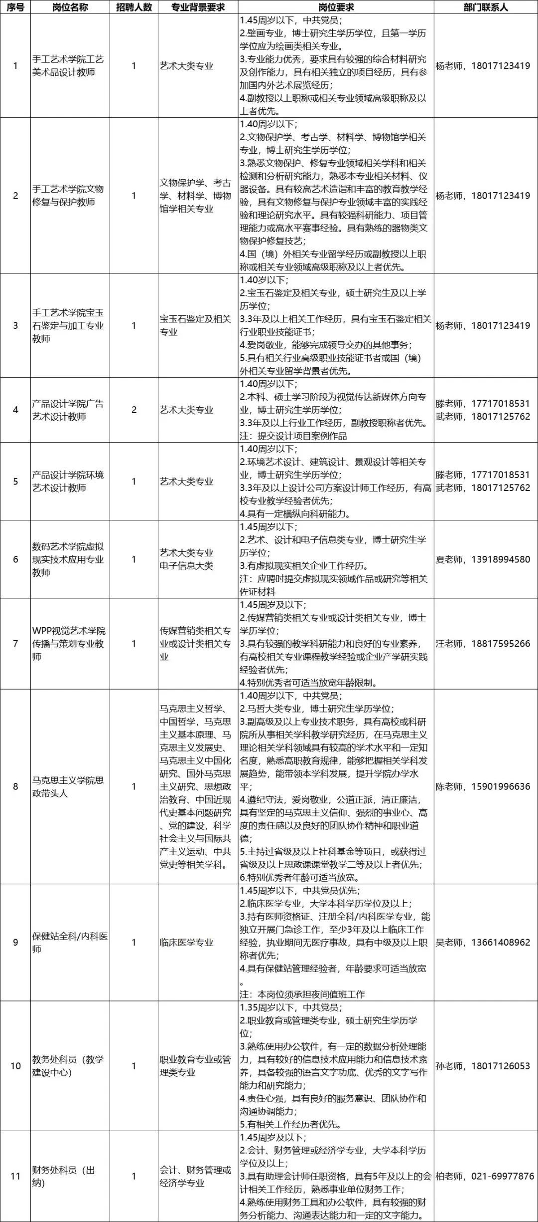上海工艺美术职业学院招聘12人。应聘者通过学院网上招聘系统报名应聘:http://rsc.sada.edu.cn/228/list.htm。如遇招聘系统技术问题,请咨询021-69977781。招聘截止时间:2022年12月31日,招满即止。详↓
