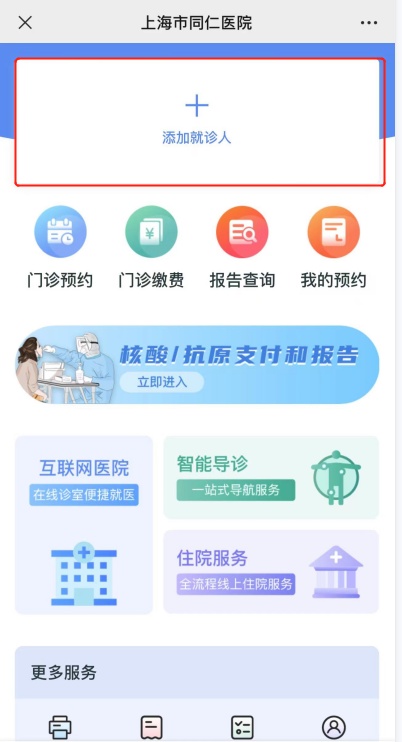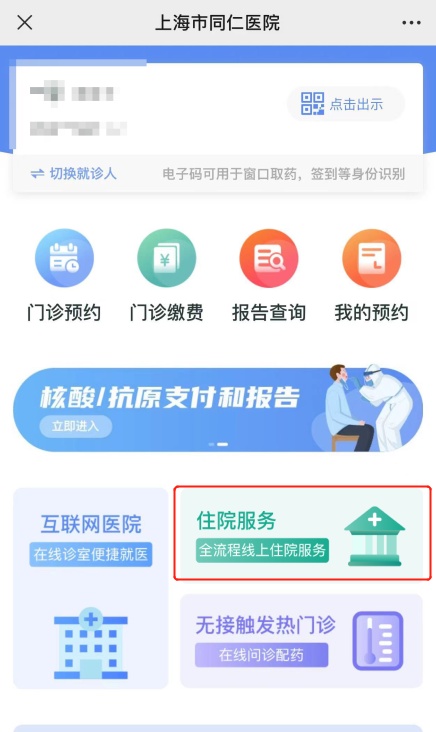 住院的患者或家属只需要关注上海市同仁医院微信公众号,进入同仁服务小程序的住院服务。通过入院登记预留的手机号码或身份证号登入“个人中心”栏目,绑定就诊卡。