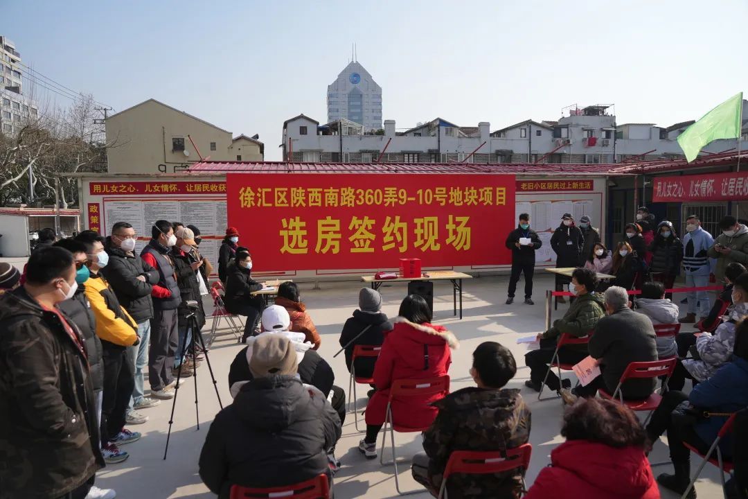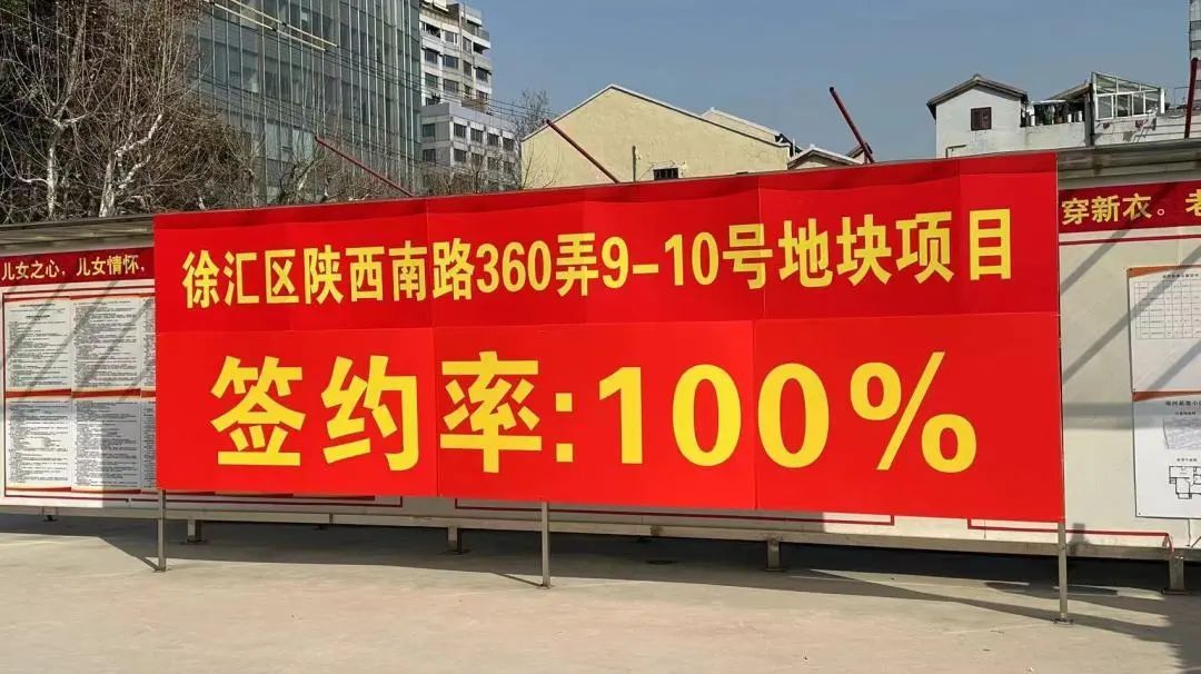 2023年1月18日,经过一上午的奋战,最后一户居民在协议书上签下名字,在场的居民们和工作人员无不欢呼雀跃。陕西南路360弄9-10号地块旧区改造项目在首日完成100%签约!