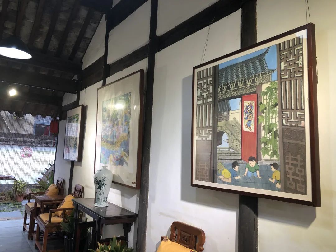还有一个最大特点,就是正埭上的里墙门间两侧有东西两个客堂间,其面积结构都一模一样。其中有的房间内还保留着许多过去使用的农家用具,时间仿佛在这里停留在某个阶段。屋主王先生告诉记者:“现在我们在这里主要从事罗店民俗画创作,是罗店镇的四季品牌之一,未来我们会继续挖掘文化内涵,将传统文化发场光大,并着力培养后继人才。”