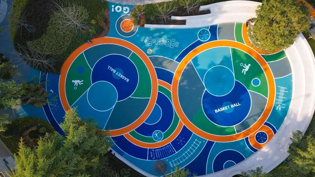除了探趣乐园区、亲子驿站区外,小游园内还设置有绿动乐园区和好奇乐园区等特色活动区。绿动乐园区是场地内阳光较充足的区域,布置了多功能运动场所及休闲健身设施,可以进行少儿篮球、传统小游戏等,旨在为周边儿童及市民提供运动场所和娱乐设施。好奇乐园区是位于场地南侧的花园空间,围绕“碳中和”“水循环”“城市生态”等多维度生态理念的互动展示,为市民量身打造出身边的“生态课堂”。
