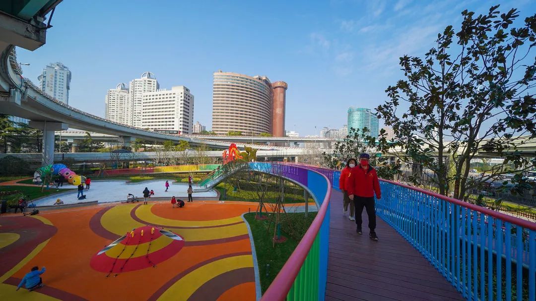 三汇路和中山西路围合的三角地块,是由南向北进入徐家汇城市中央活动区的必经之路,也是周边市民生活休闲的日常打卡地。“彩虹城”就建于此,融“汇生态、汇活力、汇科普、汇关怀、汇友好”之意,起名“乐汇小游园”,近日正式对外开放。