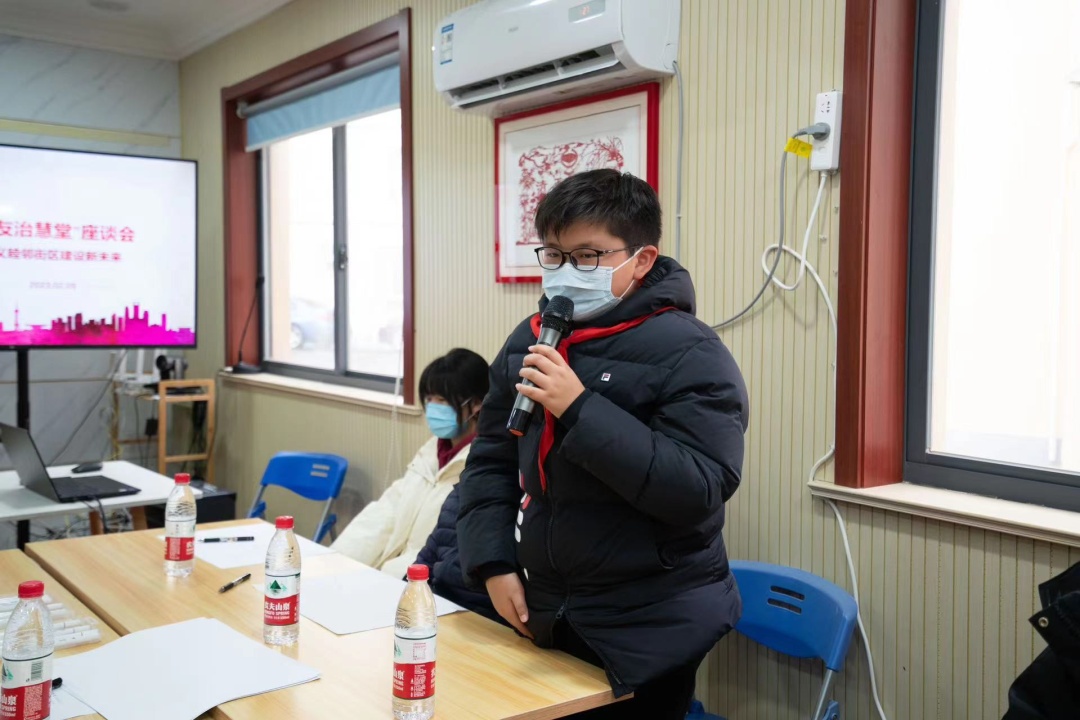 “吾友治慧堂”是五角场街道为充分发挥五区联动优势,激发青少年主人翁意识,落实共治共建共享方案所搭建的平台。座谈会上,少年儿童集思广益,共同绘制了一幅睦邻街区美好蓝图,青年代表则草拟了题为《争当社区主人翁》的倡议书。大家结合自身见闻、感受对完善睦邻街区建设提出见解。