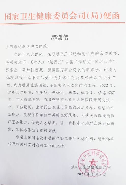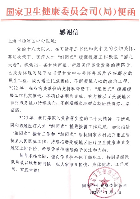 对口支援西藏是党中央和国家从全局出发做出的重要战略决策。国家卫健委给予的高度肯定,给了队员们极大的鼓舞,他们表示将继续传承好、发扬好“援藏精神”,以行动践行初心使命,充分体现“杨浦铁军”的医者风采。