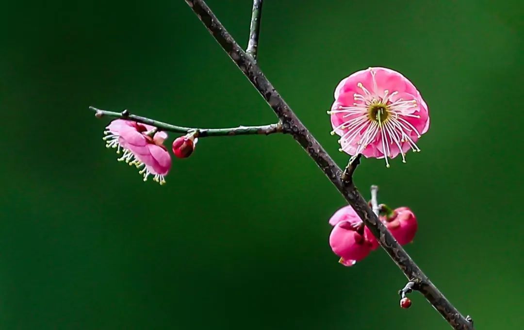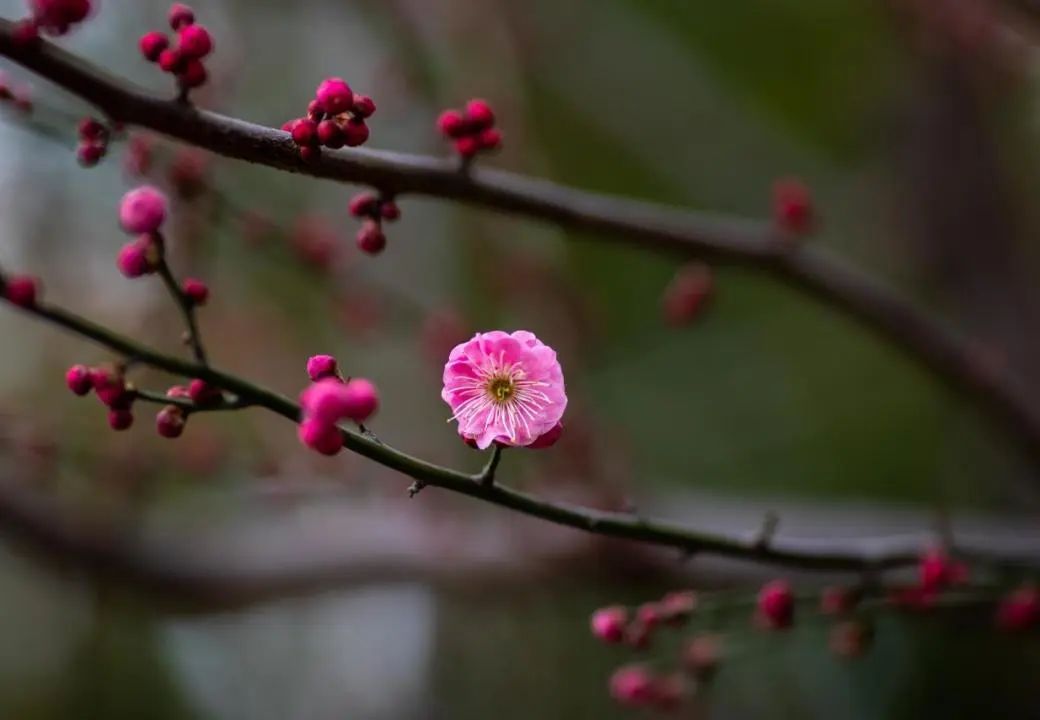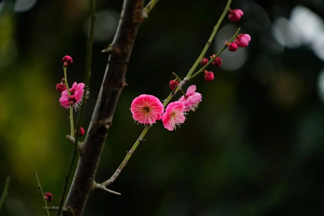 东安公园竞相绽放的朱砂梅,有的含苞待放,粉红的花苞鲜嫩可爱;有的怒放盛开,鲜红的花瓣惹人喜爱。一阵幽幽的花香随风扑鼻而来,沁人心脾,向人们传递着早春的气息。