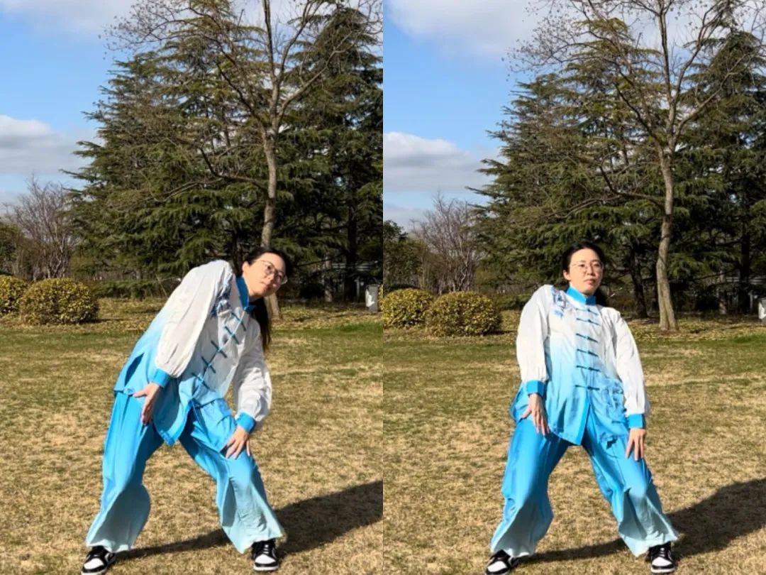 4、重复:右式动作与左式动作相同,但方向相反。该势一左一右为一组,共做3组。