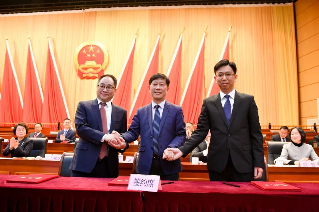 会上,上海交通大学与闵行区人民政府签署了《关于上海交通大学支持上海市闵行区人民政府建设“上海闵行职业技术学院”的框架协议》