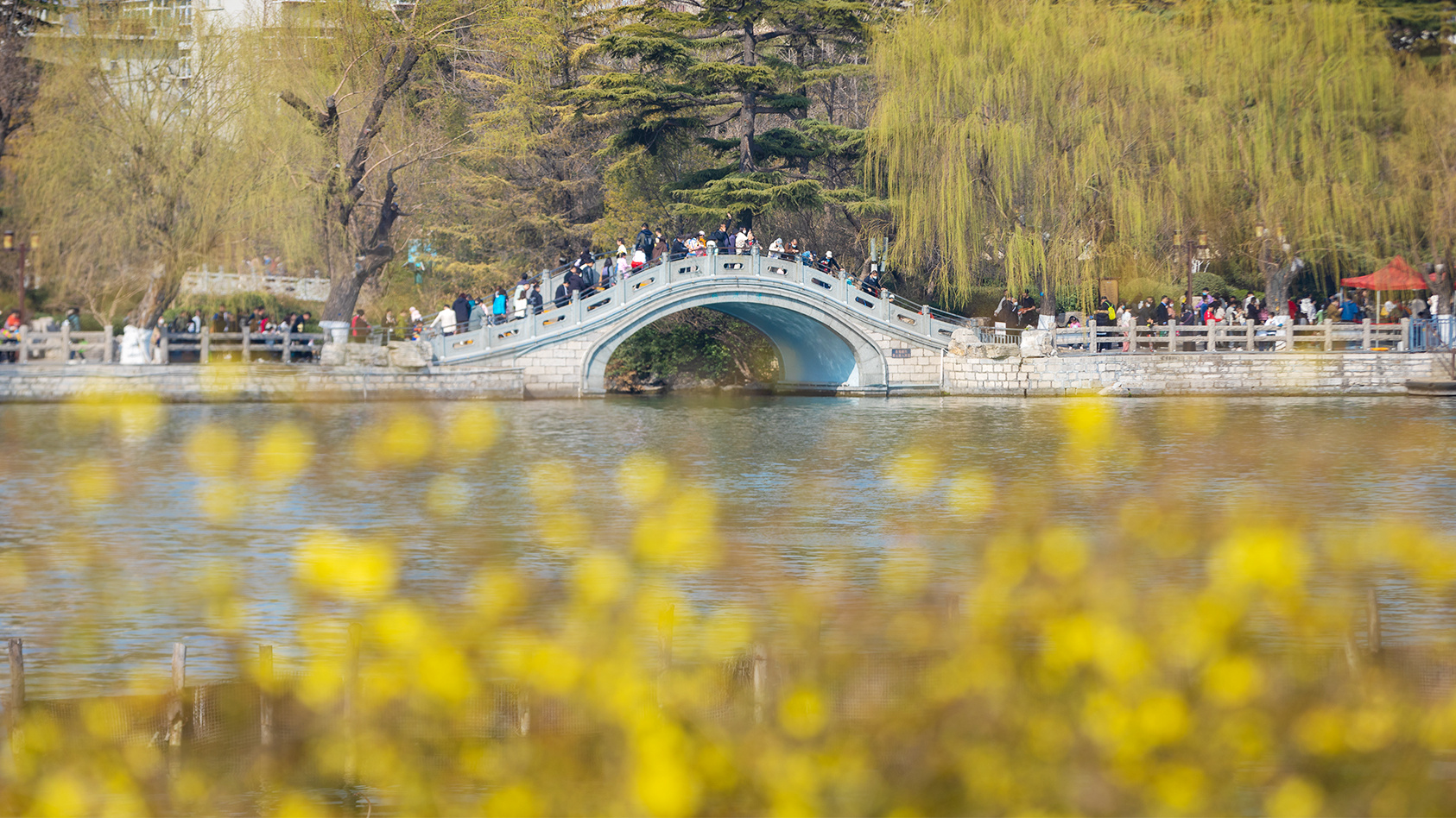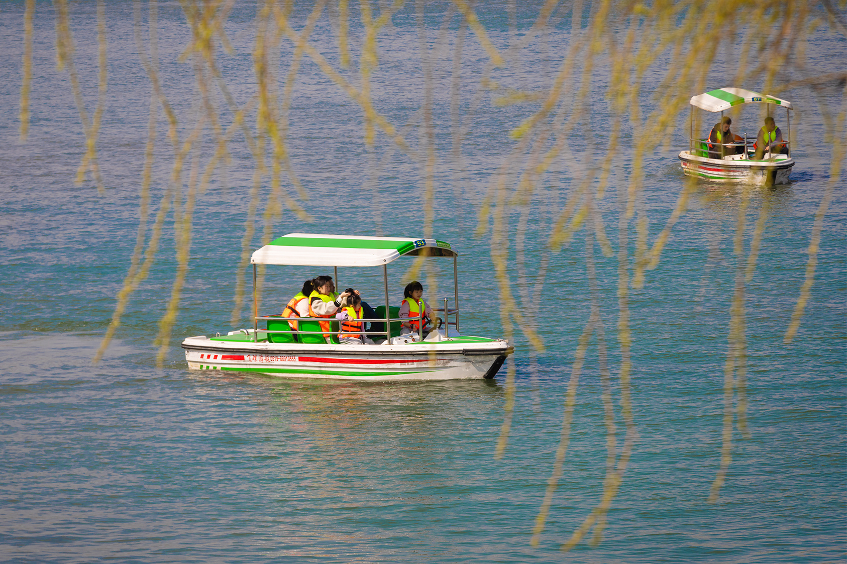 春天里的大明湖有多迷人?白云蓝天下,水波荡漾,春风骀荡,新柳绿、连翘黄、桃花红,还有水鸟戏水,船儿悠悠……“迟日江山丽,春风花草香”,让人陶醉在大明湖春日的妙景里。(大众日报客户端记者 杨润勤 报道 摄影 张宝贤)