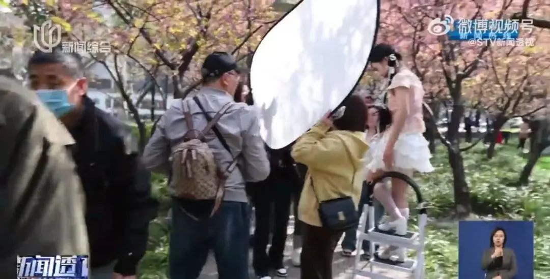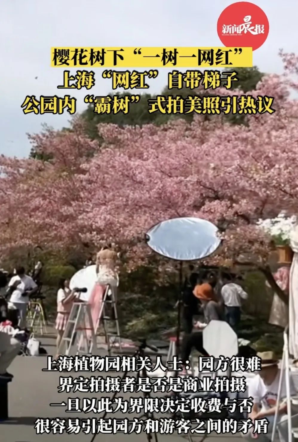 “如果说‘人面桃花相映红’体现的是人与自然的和谐之美,密集的高梯子、反光板、大炮筒相机则打破了公园的自然与宁静,这是审美之忌;公园和街道是公共空间,因一己之私利长时间霸树拍摄,侵犯了别人的赏花权,有损公共空间的公益性。”