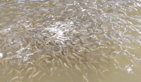 约8000多尾鱼苗成群结队