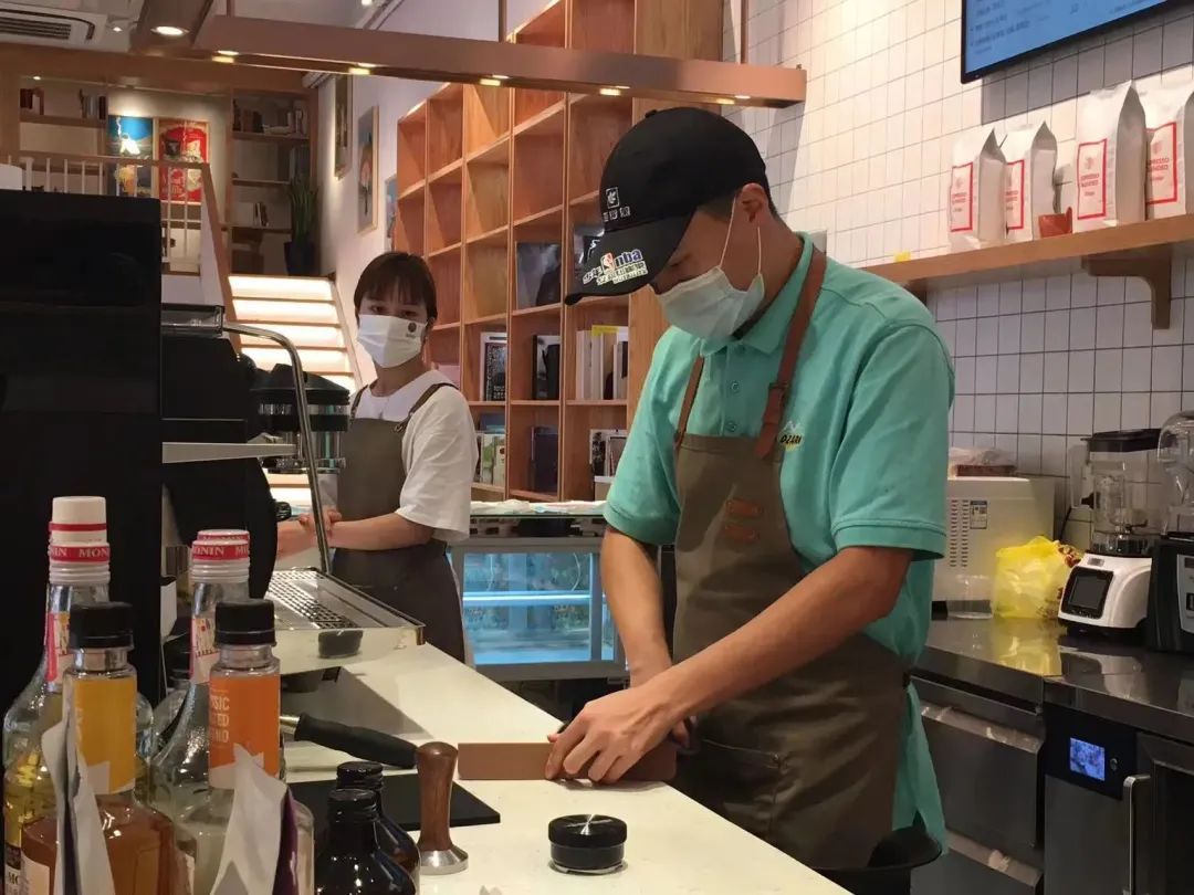 咖啡馆负责人黄悦表示:“杰杰算是我们里面工作状态比较好的一位,也很有热情,他可以从点单、做咖啡,到端给客人全流程去做。”