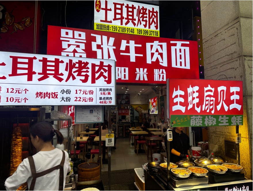 以前,他只是直接打个广告,挂在门牌上。如今为了生意好,他也不得不把招牌打出来,出来摆摊。很多人都冲着夜市的外摆位而来,只有随大流才能赚钱,单独个例在店内营业,就会被其他商家压下去。商铺租金也不便宜,当然还是希望生意更好一点。