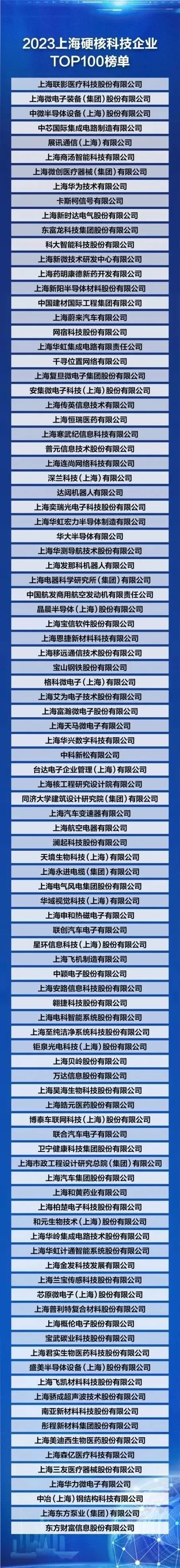 近日,在上海市产业技术创新大会上,上海市产业技术创新促进会联合市科协等单位发布《2023上海硬核科技企业top100榜单》。嘉定企业上海联影医疗科技股份有限公司位列榜首。