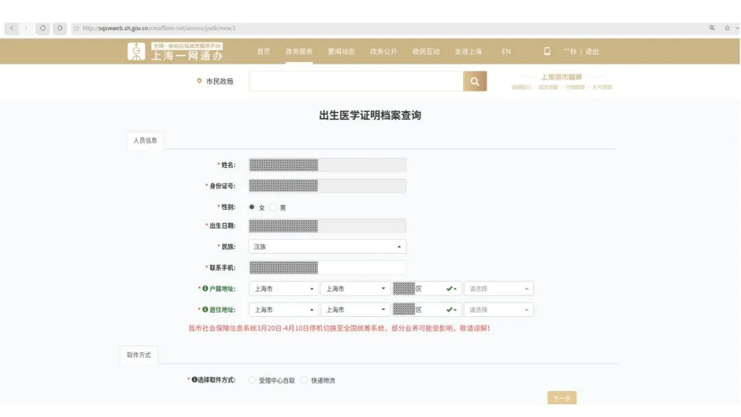 如您选择“一网通办”在线办理,可通过调用电子证明,“零材料”办理出生医学证明档案查询事项。