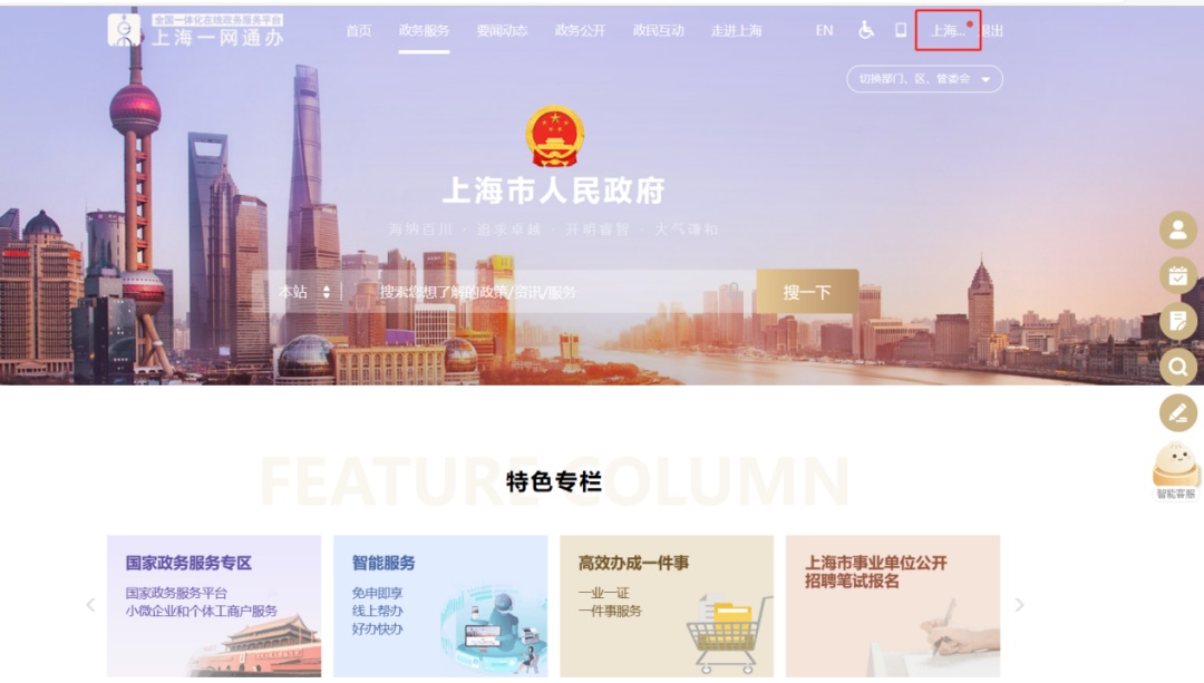 ①登录“一网通办”后点击姓名或企业名,进入“一网通办”市民主页或企业专属网页