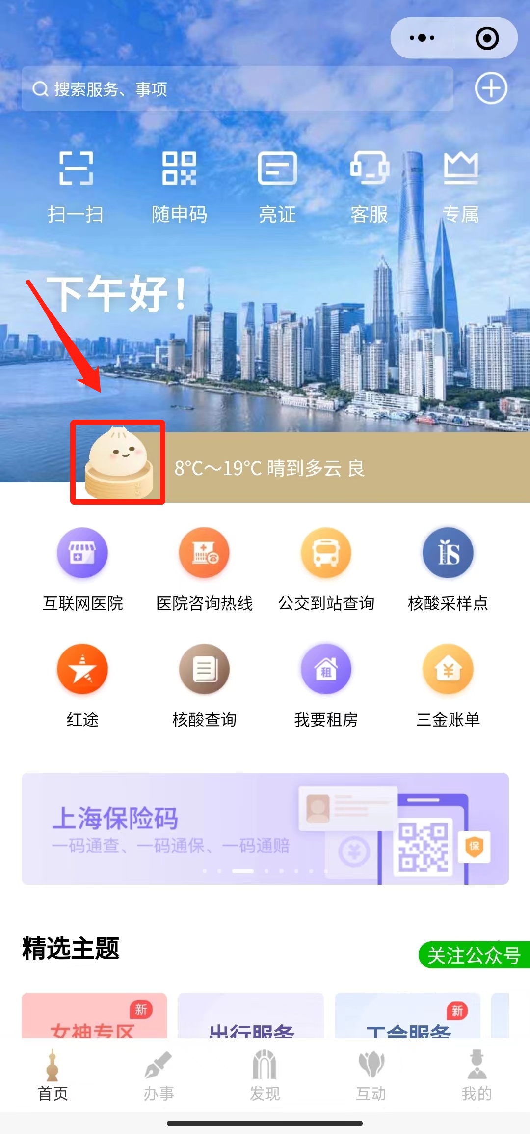“随申办”微信小程序、“随申办”app、“随申办”支付宝小程序首页点击【小笼包】按钮进入消息中心