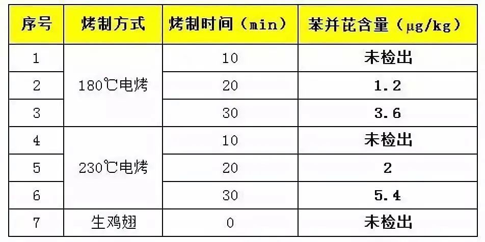 结果显示,刚烤熟的鸡翅未检出苯并芘,越糊的鸡翅苯并芘含量越高。