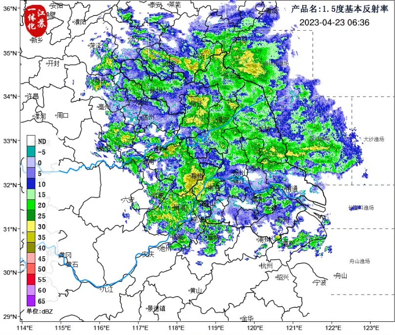 天气阴沉!4月23日(今天),江苏多地降水,多普勒气象雷达图显示,降水基本覆盖全省,阴雨天气,大家外出记得带上雨具用品,注意出行安全。