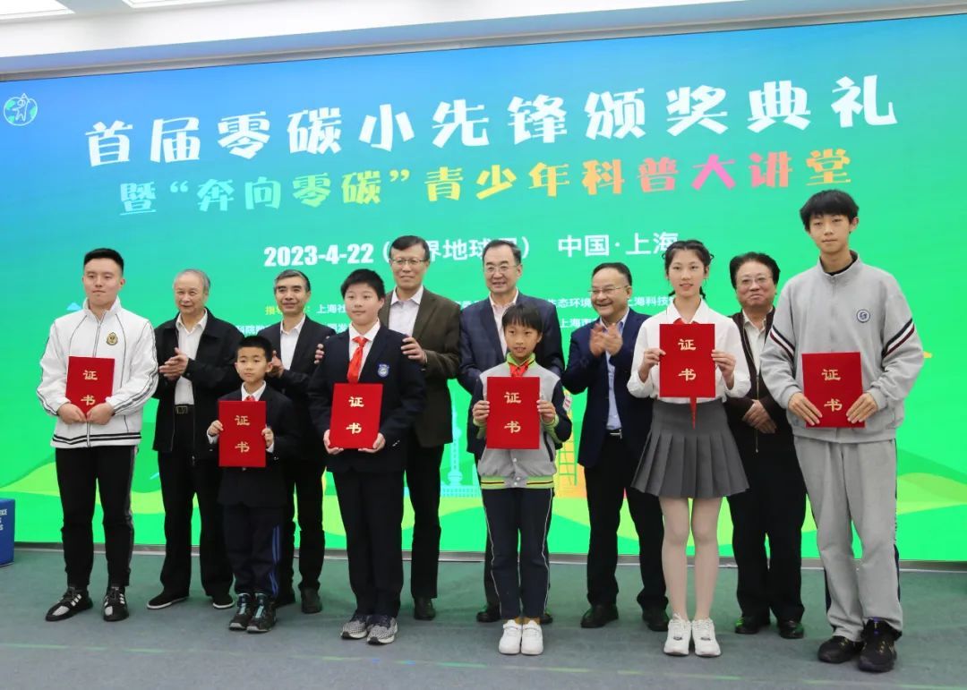 颁奖典礼上,国家生态环保专家委员会委员、原国家环保部党组成员胡保林,全国人大代表、上海社会科学院党委书记权衡,上海市生态环境局副局长柏国强,上海市教育委员会副主任王浩,上海市青少年发展基金会理事长吴仁杰,全国政协委员、上海科技馆馆长倪闽景等为来自全国各地的32位“零碳小先锋”颁发证书。孙丹、牛智敬、李懿、宾晖、臧云峰等15位积极参与活动的热心人士获颁“零碳爱心大使”。