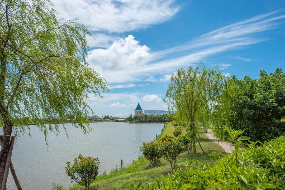 河道两岸植物配置上既有常绿树种,又有四季开花、颜色各异的花灌木类,于碧水之间展现树荫草绿、花香虫鸣的人文气息,周边景色美不胜收。