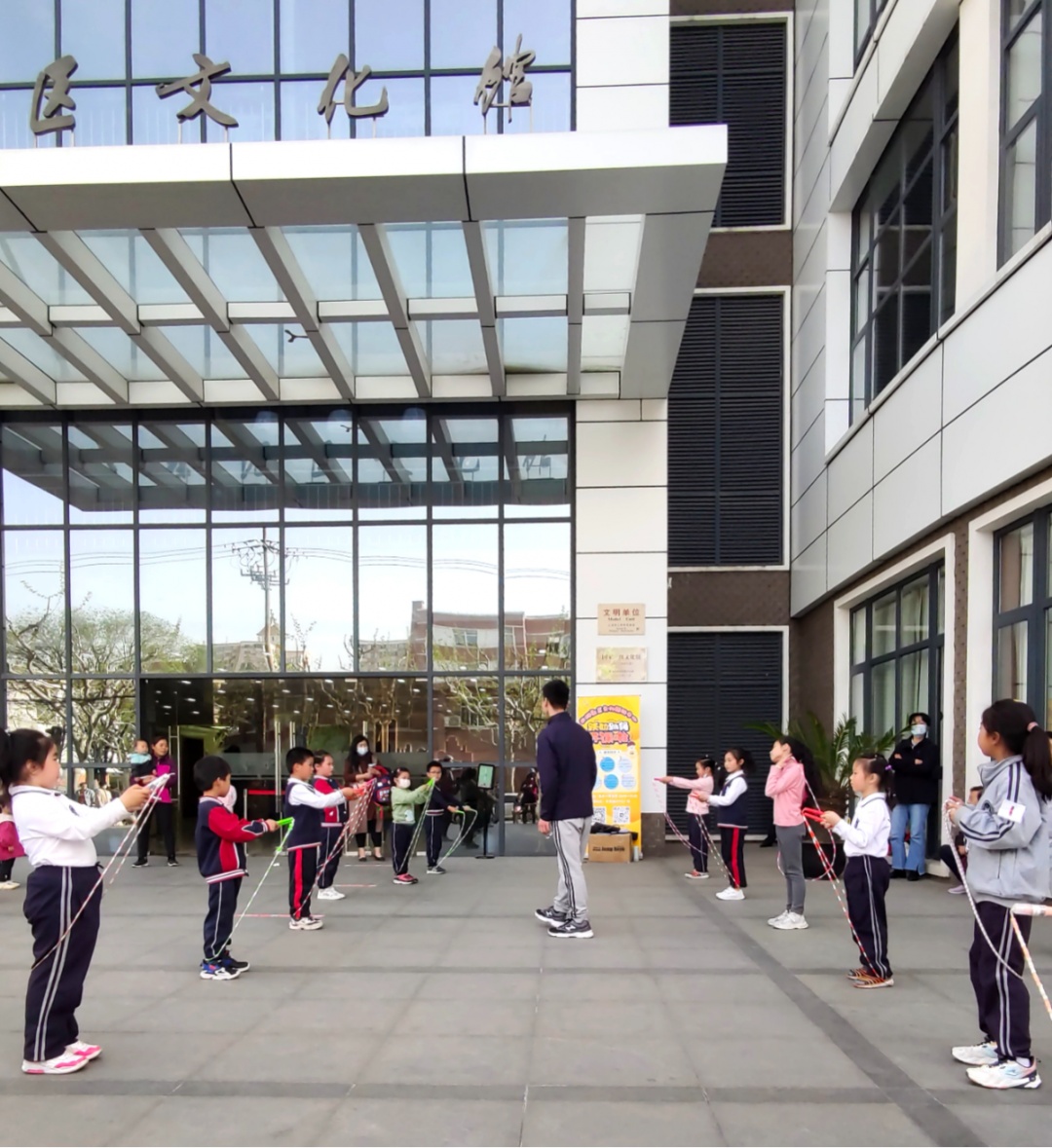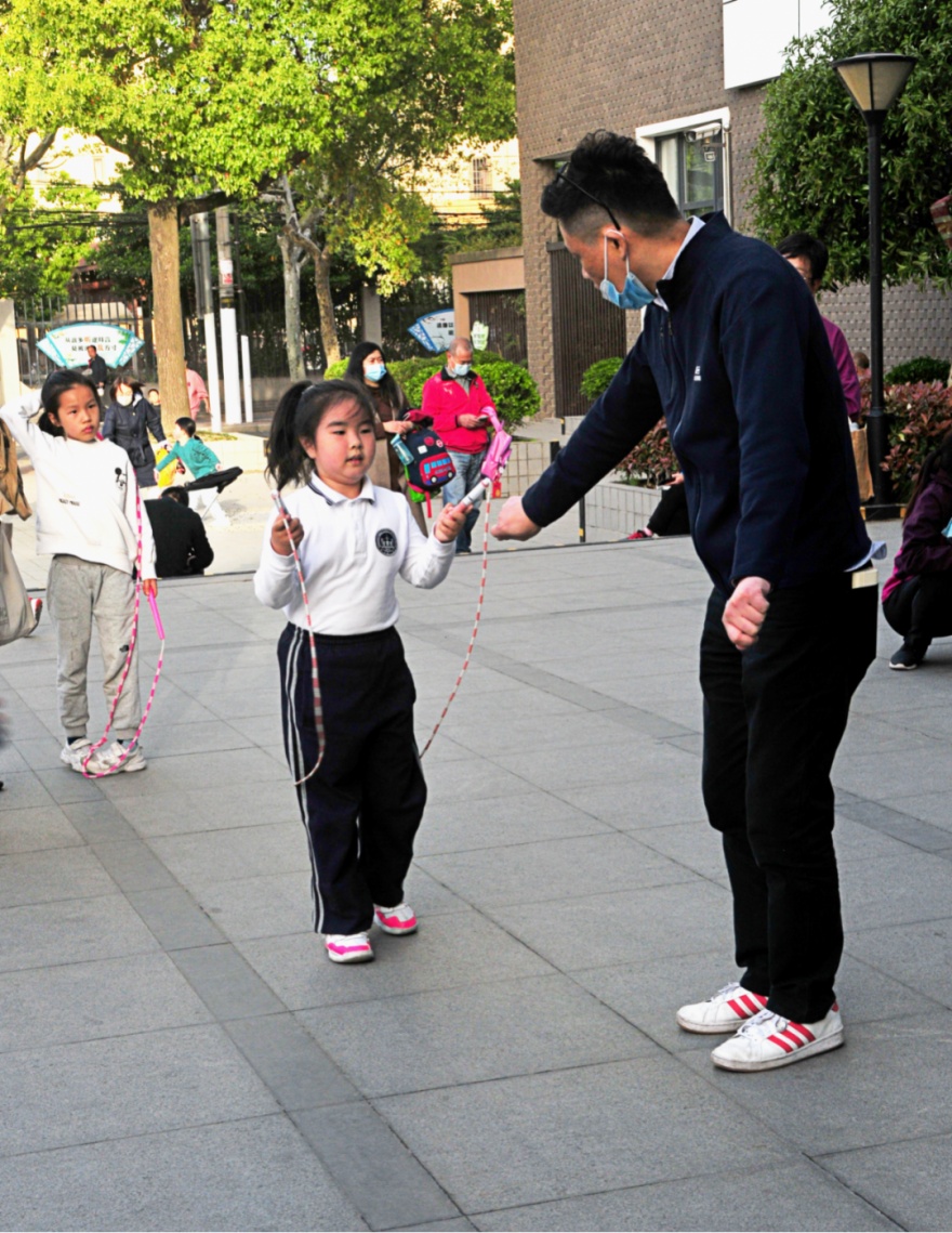 2019年以来,除了在广场上开设开放式花样跳绳公益课,长桥街道还邀请专业机构陆续将花样跳绳课程配送进辖区内的上海小学、向阳育才小学、星辰幼儿园等9所学校,在学校放学后开展花样跳绳课程,受益学生达3800多人。其中,徐汇区向阳育才小学已经将花样跳绳作为学校阳光体育活动的特色项目,学校的跳绳队多次在长桥街道活动和徐汇区运动会上进行花样跳绳的表演。