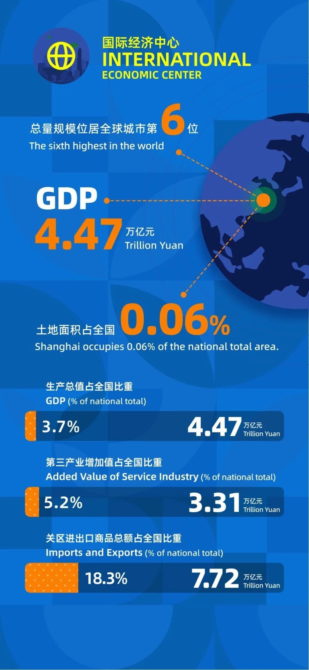 上海始终稳健发展,2022年,上海gdp总值达4.47万亿元,总量规模位居全球城市第六位;