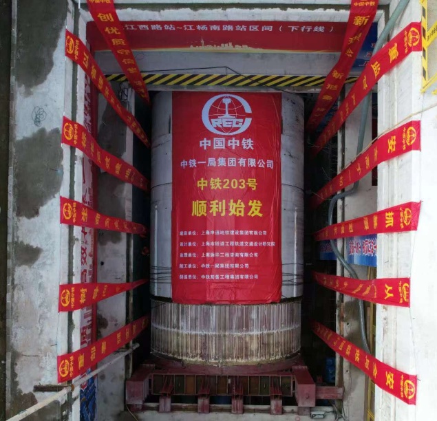 伴随着中铁203号盾构机刀盘缓缓启动,上海轨道交通18号线二期工程土建1标长江西路站-江杨南路站区间下行线盾构顺利始发。